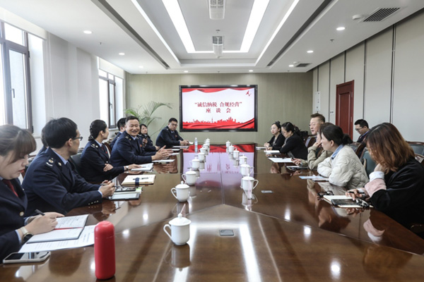 启动仪式结束后,滨海新区税务局邀请体验师们走进第一税务所办税服务厅,切身感受办税缴费新体验,税务干部介绍了“三级导税”运行模式并带领大家先后参观了多个功能区,对各窗口职能做出讲解,邀请体验师们体验电子税务局线上办理等“非接触式”便捷办税服务,展现了智慧税务带来的办税缴费服务新升级新变化。随后,在滨海新区税务局开展了“诚信纳税 合规经营”座谈会,各与会单位围绕滨海新区营商环境、企业发展与需求、税费优惠等内容畅谈交流、共谋发展。