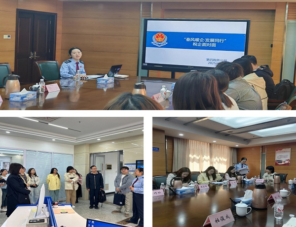 为深入推进2025年“便民办税春风行动”,持续推广征纳互动服务,深化税企沟通交流,近期,国家税务总局天津市税务局第四税务分局组织开展“春风暖企·发展同行”专题活动,邀请企业代表走进税务局,来一场征纳互动的“双向奔赴”。 面对面交流:税企座谈问需解难 专题座谈会上,企业代表们与税务干部深入交流。会上就企业提出的税费政策落实、纳税信用等级、征纳互动系统操作等问题展开讨论。税务干部现场解答增值税留抵退税、跨区域事项办理等问题,并对个性化需求,建立“企业需求台账”,确保“问题有跟进、反馈有时效”。“这种沟通有温度、有力度,我们感受到了税务部门的用心,”中海油能源发展股份有限公司天津人力资源服务分公司办税人员刘佳佳女士表示,“希望税务部门多举办线下培训等活动,多提供这种面对面交流的机会。”