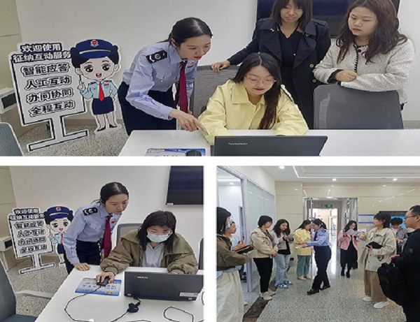 广覆盖调研:问卷调查把脉问诊 活动同步开展“‘征纳互动’知多少”问卷调查,收集十余份有效反馈。调查问卷重点聚焦“征纳互动”知晓程度、使用情况、服务满意度及改进建议方面。调查结果显示,“征纳互动”在政策解读方面尤其让纳税人缴费人感受到便利,纳税人缴费人更希望“征纳互动”在税费政策实时解读与精准推送、复杂业务远程操作指导等方面给予更大支持。 沉浸式体验:现场感知服务效能 活动邀请十余家企业代表担任“税费服务体验师”,实地操作电子税务局“征纳互动”模块,全程体验智能咨询、人工互动等功能,并测试服务响应速度与准确性。通过“角色互换 场景实操”模式,让企业人员直观感受智慧税务的便捷性。 多渠道宣传:精准推广征纳互动 进入税费服务中心,“欢迎使用征纳互动服务”指示牌首先映入眼帘,第四分局干部为企业代表们详细介绍税费服务中心功能分区,参观了vip会议室和云端会客室,发放《征纳互动操作指南》等宣传手册,重点标注“征纳互动”入口路径与功能亮点,结合高频业务示例讲解,帮助纳税人快速掌握“征纳互动”操作要点。
