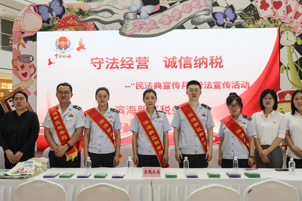 5月22日,正值第五个“民法典宣传月”,国家税务总局天津市滨海新区税务局紧扣“守法经营 诚信纳税”主题,在滨海万达广场举办专题普法宣传活动,助力各类经营主体依法依规经营,营造诚信纳税良好氛围。